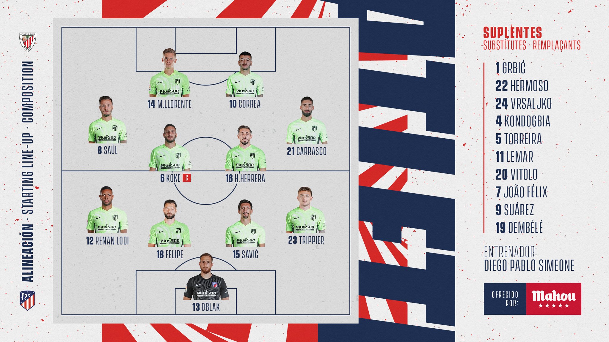 Atletico De Madrid On Twitter And Now Your Atletico De Madrid Starting Xi Athleticatleti Aupaatleti