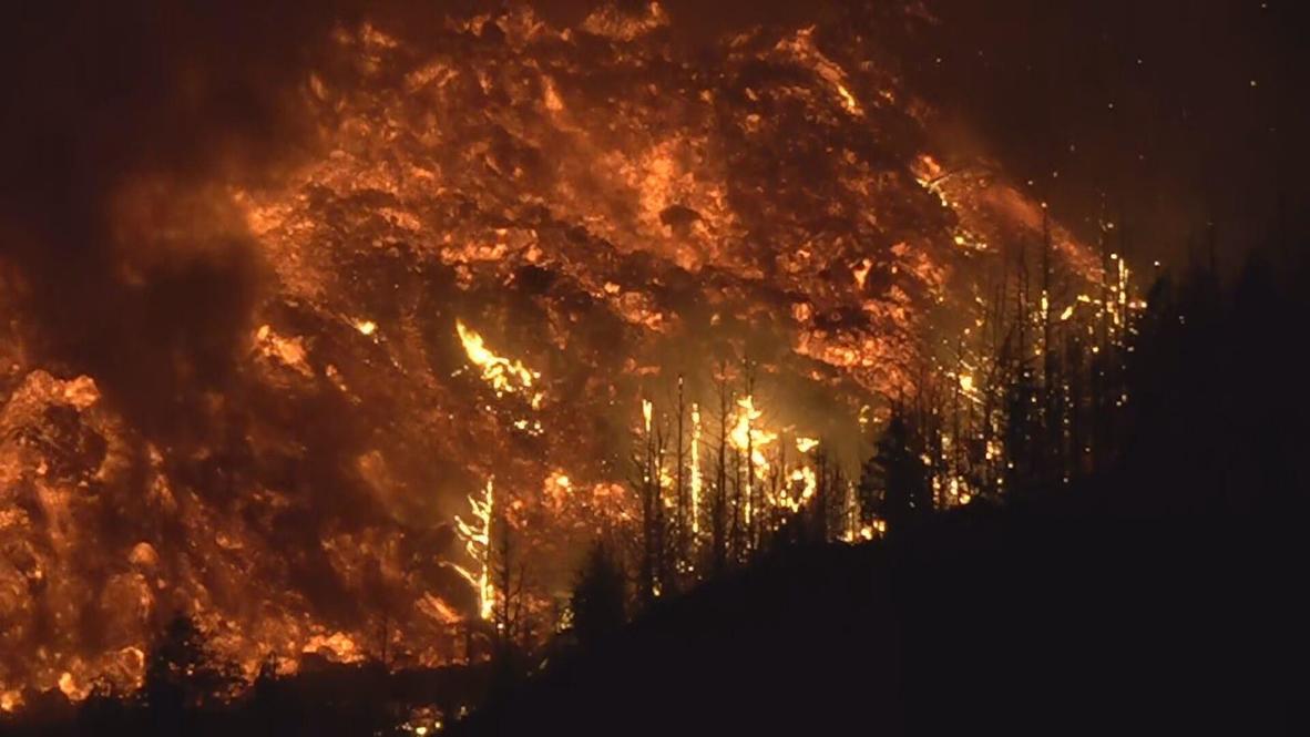 Local residents and animals evacuated shortly before lava and huge plume of smoke rise high into sky.